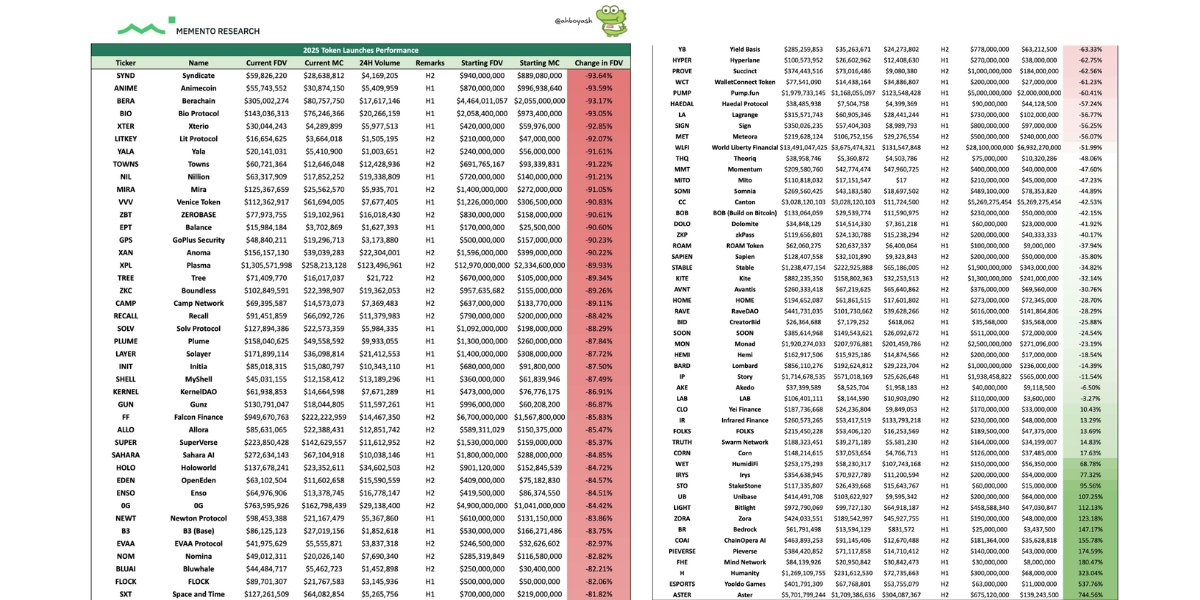 - 2025 年:118 个代币中,100 个在 TGE FDV 之下交易。