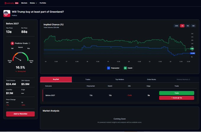 - 汇总主流预测市场的数据。