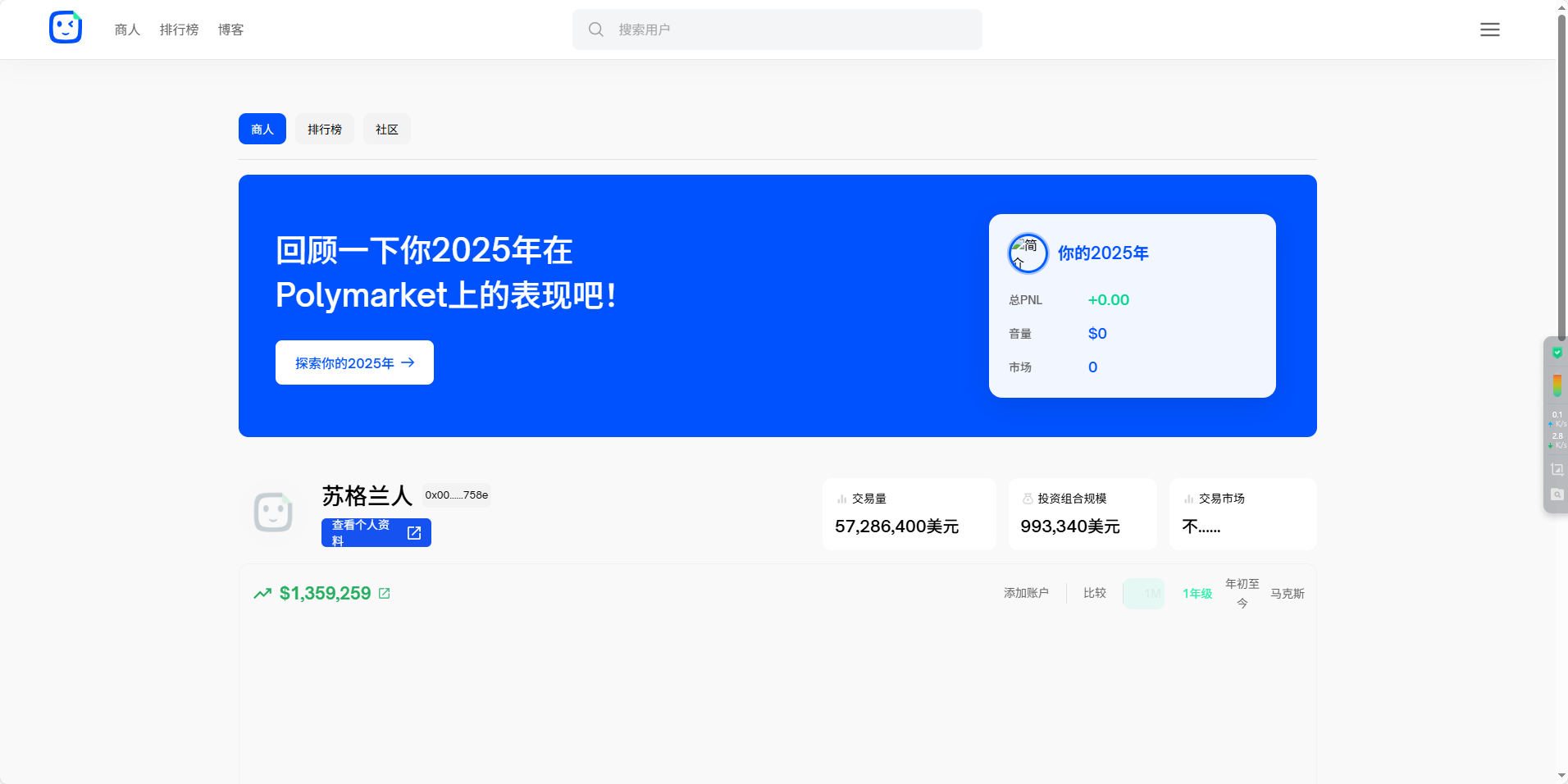 PredictFolio 是一个 专为预测市场(尤其是 Polymarket)打造的独立分析平台,通过链上公开数据生成可视化统计与交易者表现洞察,帮助用户更好理解自己与他人在预测市场中的表现。它不是交易平台,而是数据分析工具。