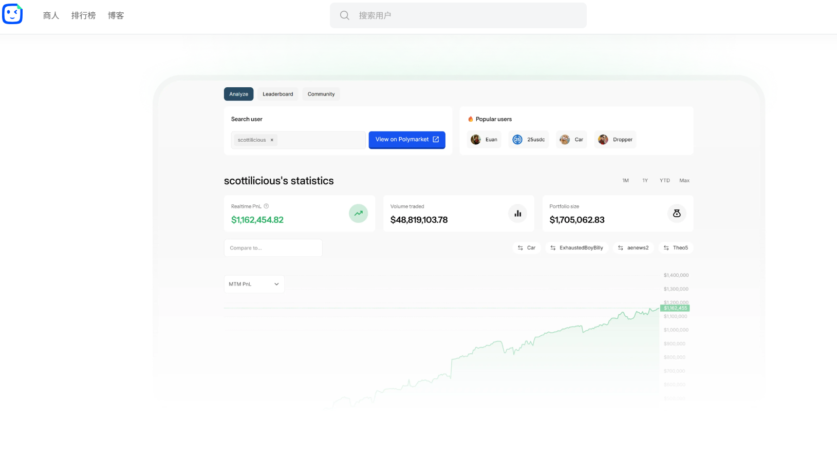 ✅ 独立于 Polymarket 的透明度工具:能看到别人看不见的行为与表现,提高判断力。
