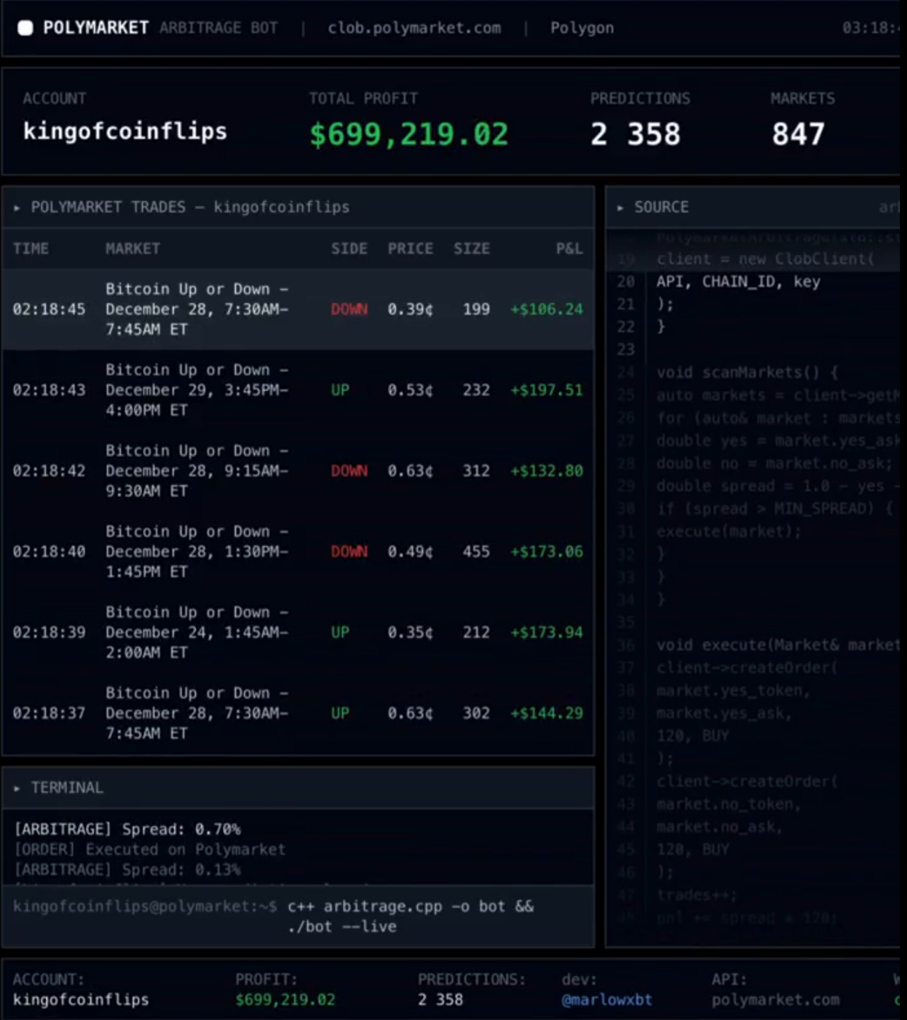 Coinflips(掷硬币)但从数据来看,这早已不是赌博。这是在利用系统更新速度与现实之间的误差,持续、低调地收割。