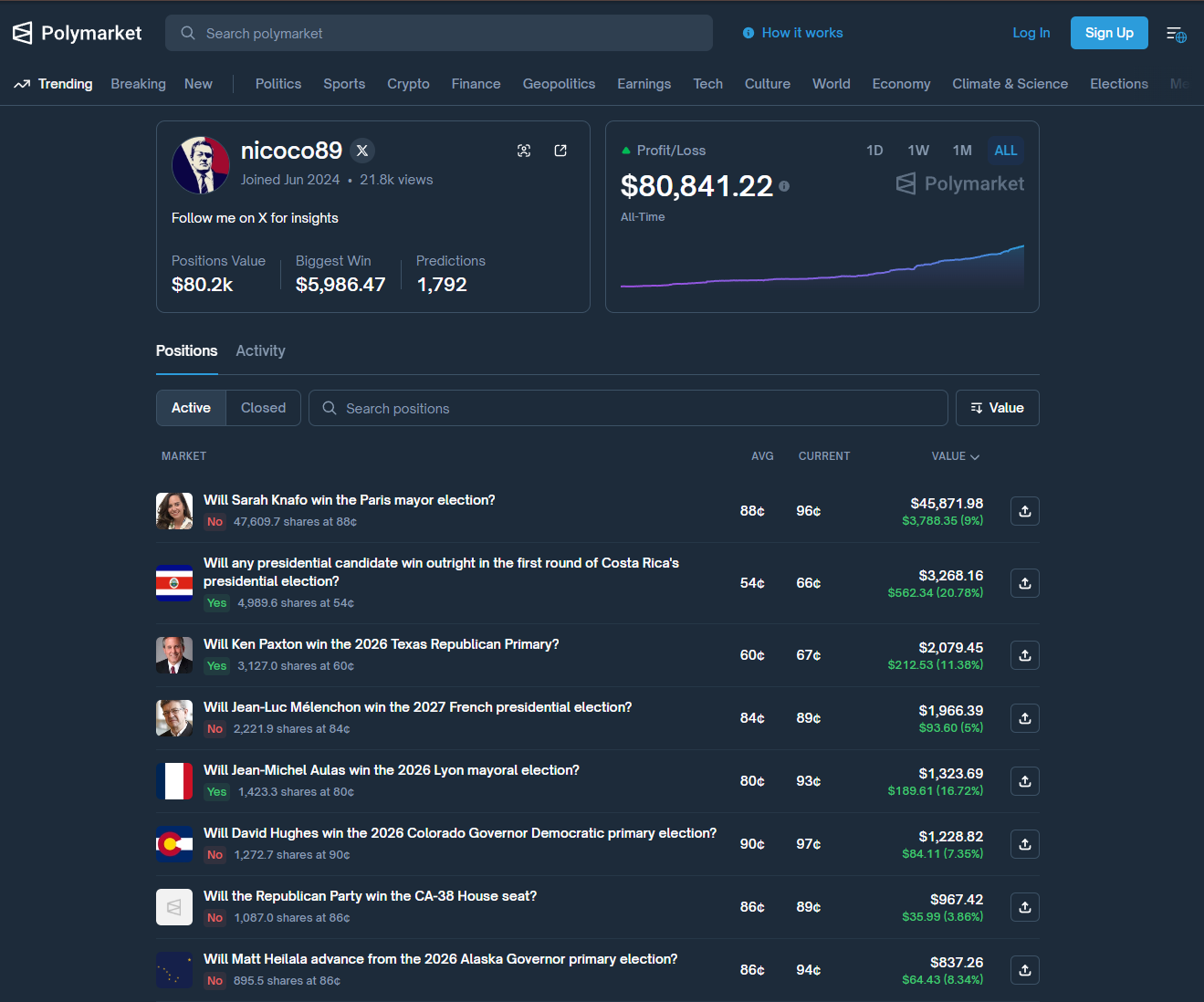 他的账户:https://polymarket.com/@nicoco89?via=valera-666