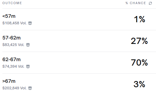 过去一周,关于这部备受期待电影第二个三天周末票房表现的最新消息显示,进入12月26日至28日期间,势头强劲。有报道称,该片在圣诞节后表现良好,周五国内票房达到2260万美元,位居榜首。周末的预测估计,国内总收入将突破2亿美元。社交平台的情绪和早期追踪显示,潜在的总收入在5500万至7000万美元之间,增强了6200万至6700万美元的最高候选人在70.0%的可能。