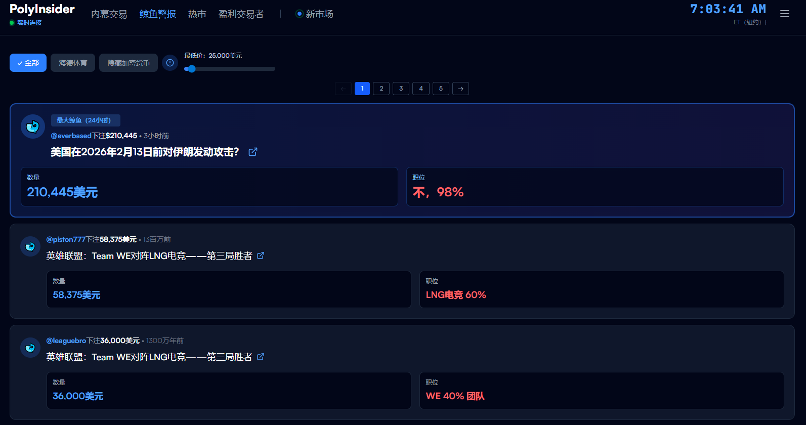 PolyInsider的大户预警功能能够实时监控市场中的资金流向,提供以下关键信息: