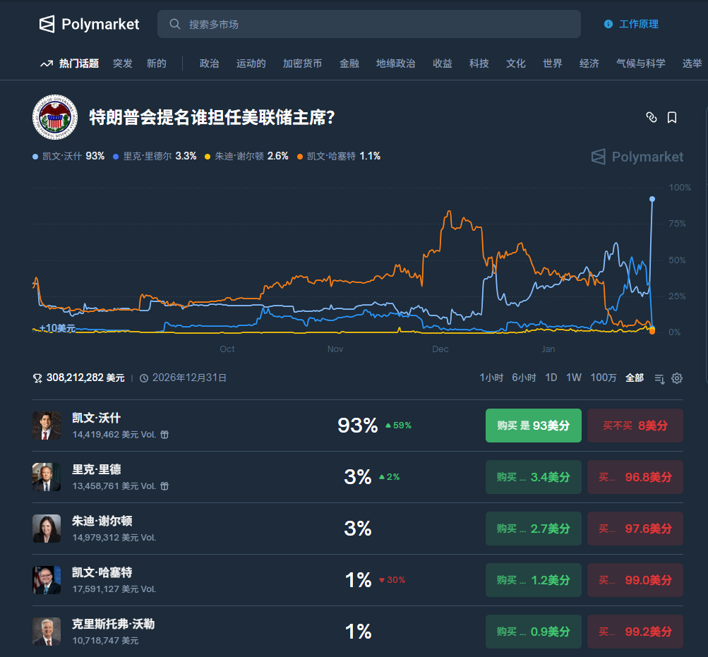 这场联邦主席预测市场,正在变成一出现实版黑色幽默。从赔率变化来看,剧情的发展已经远远超出了理性分析的范畴。