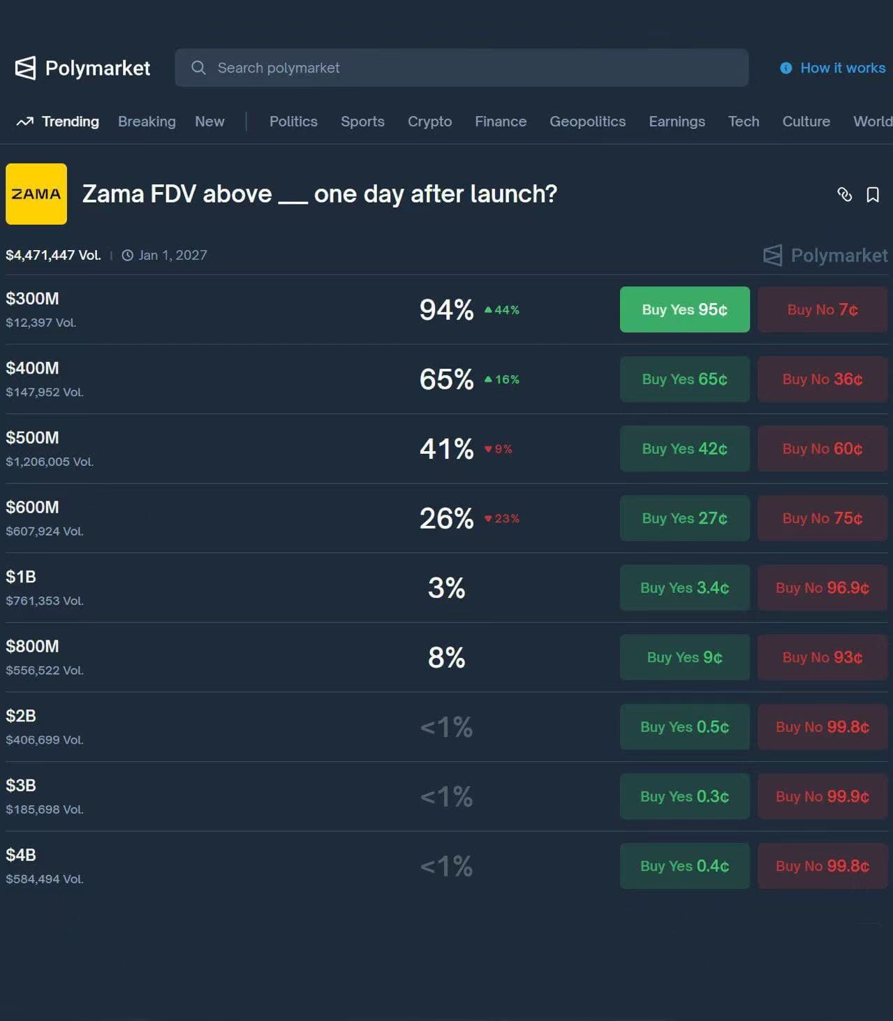 市场可能低估了 $ZAMA 的真正潜力。 当前 Polymarket盘前价格仅为 0.041 美元,而市场正见证一个典型的超卖情景——市场因恐慌定价而将价格推低,完全忽略了其坚实的基本面。