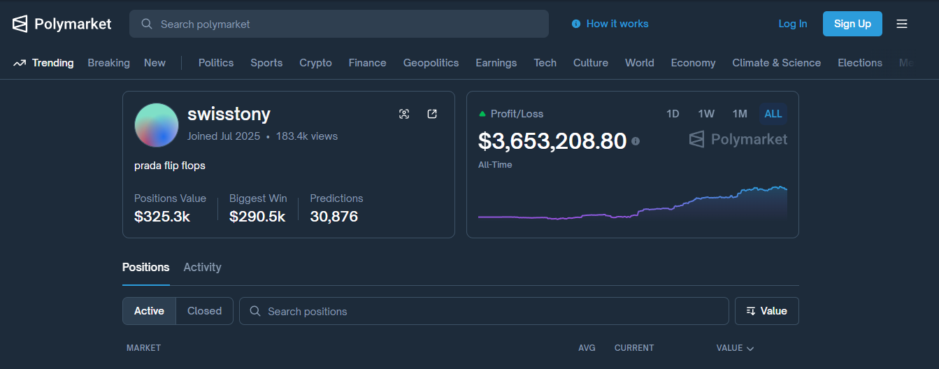他的账户 → http://polymarket.com/@swisstony